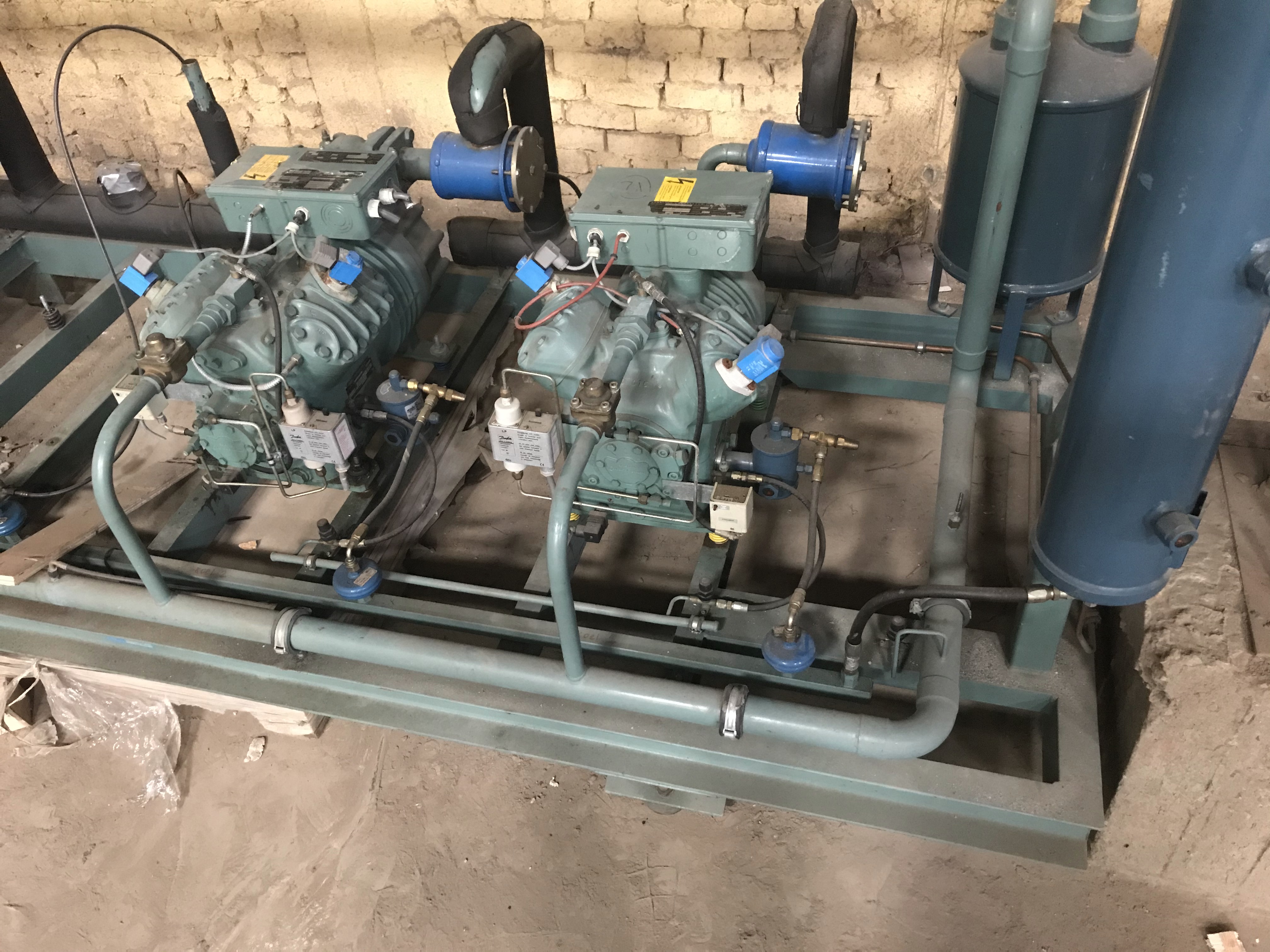 Used Semi-hermetic compressor unit. Consisting of the following elements: (2x) Bitzer 4T-12.2Y, (1X) 4G-20.2Y compressors.